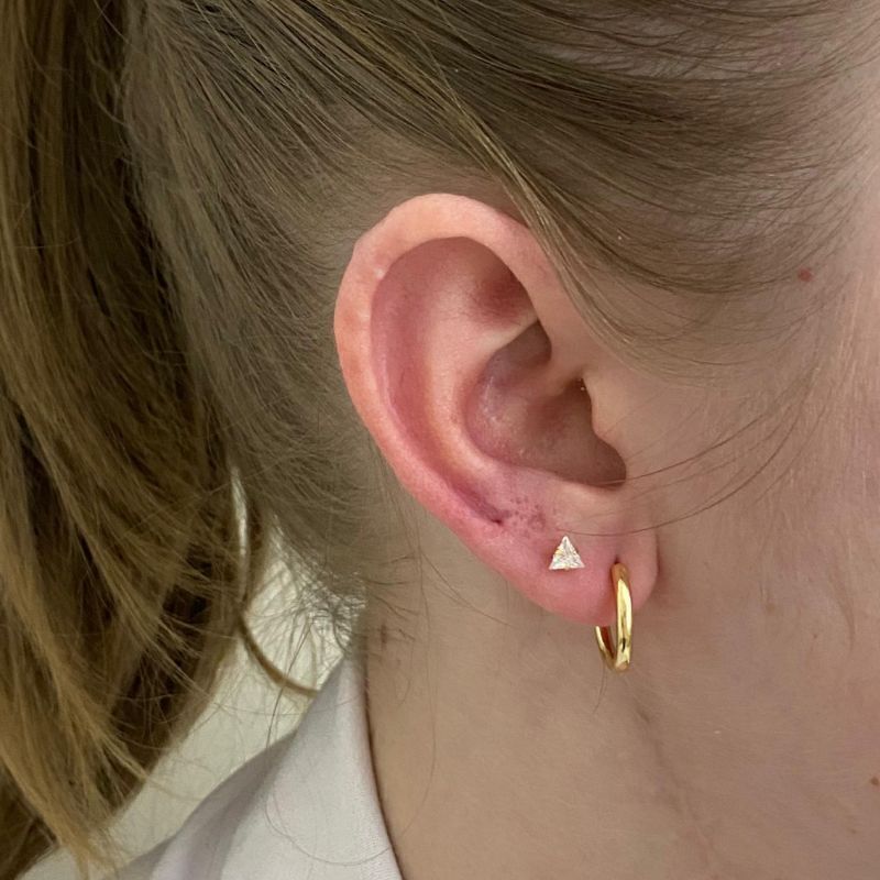 BRINCO PONTO DE LUZ TRIANGULO FOLHEADO EM OURO 18K